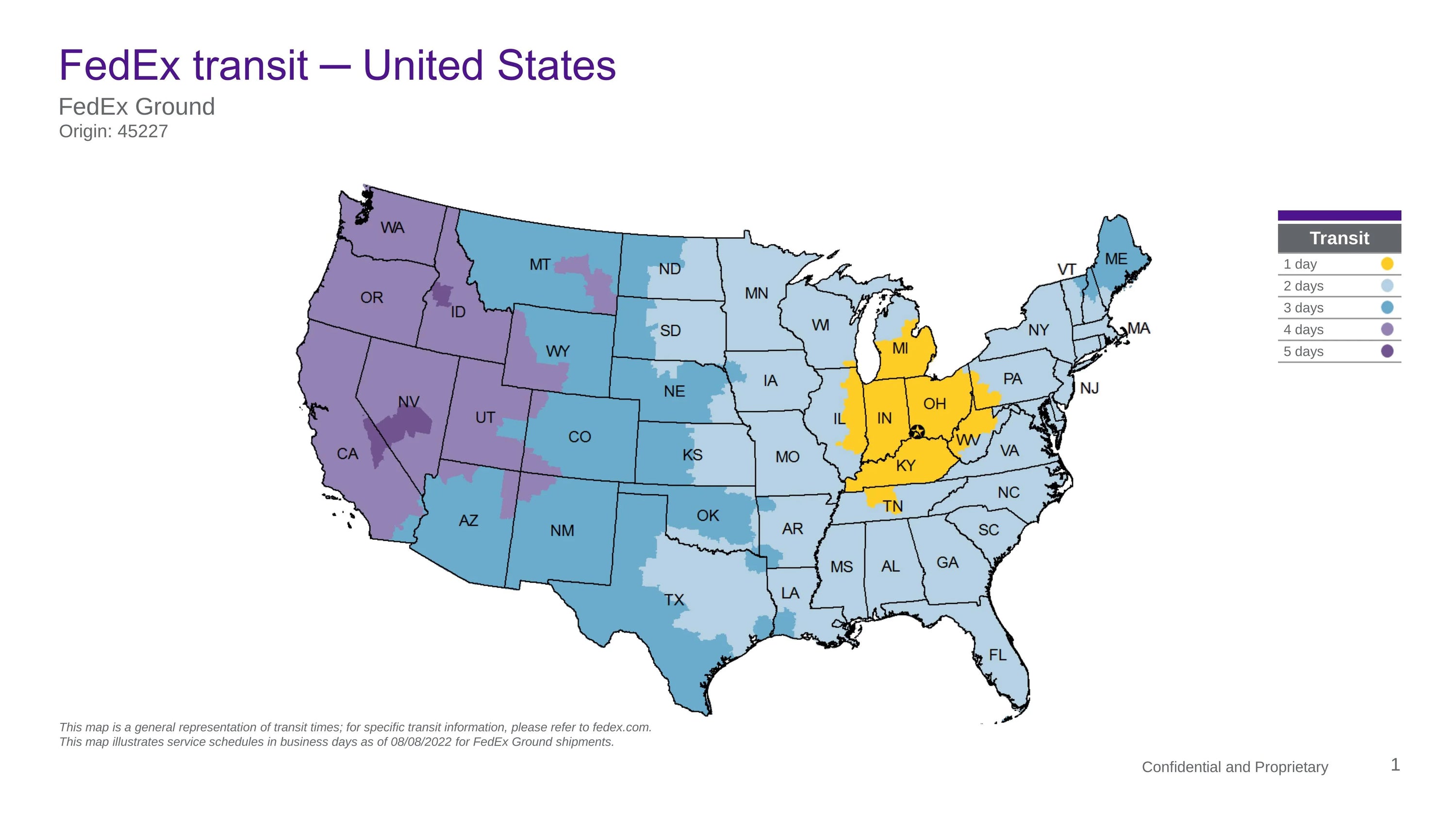 We ship next business day via FedEx ground. FedEx delivers within 1 to 5 days depending on distance from Cincinnati, Ohio.
